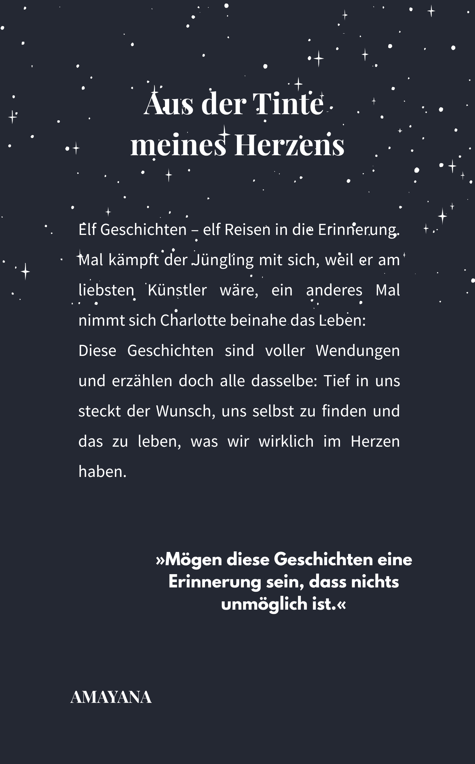 Jede Geschichte entfaltet eine Wendung – und doch erzählen sie alle von derselben Sehnsucht: Tief in uns liegt der Wunsch, uns selbst zu finden, loszulassen und zu leben, was wir wirklich im Herzen tragen.